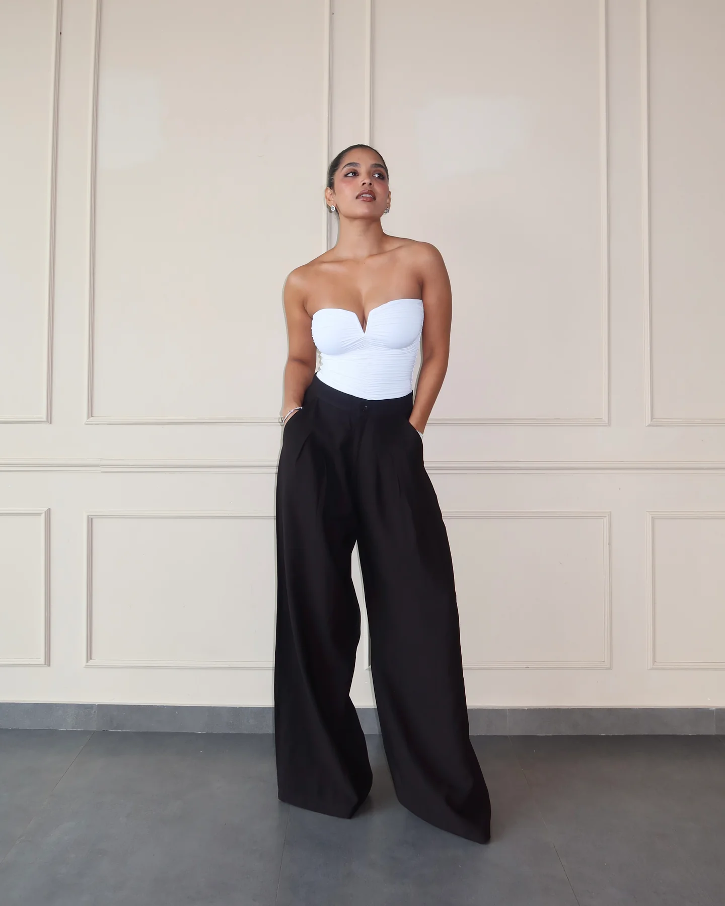 The Pleated Wide-Leg Pants are a breezy wardrobe essential that blend relaxed elegance with everyday practicality. Made from a lightweight woven fabric, these pants feature a high-rise fit with front pleats for a flattering drape and dramatic flow.